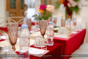 Khoảnh khắc cô dâu bước đến trong ánh sáng lung linh, giữa không gian phủ đầy sắc đỏ, đôi mắt chú rể ánh lên niềm tự hào và hạnh phúc – đó chính là giây phút mà mọi nỗ lực chuẩn bị đều trở nên xứng đáng.
