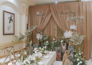 Đặc biệt với lễ gia tiên tại nhà, không gian thường có giới hạn về diện tích và kiến trúc. Việc bố trí phông, hoa, bàn thờ, lối đi… đòi hỏi kinh nghiệm thực tế. Chỉ những đơn vị trang trí cưới hỏi chuyên nghiệp mới có thể xử lý hài hòa giữa truyền thống và hiện đại.